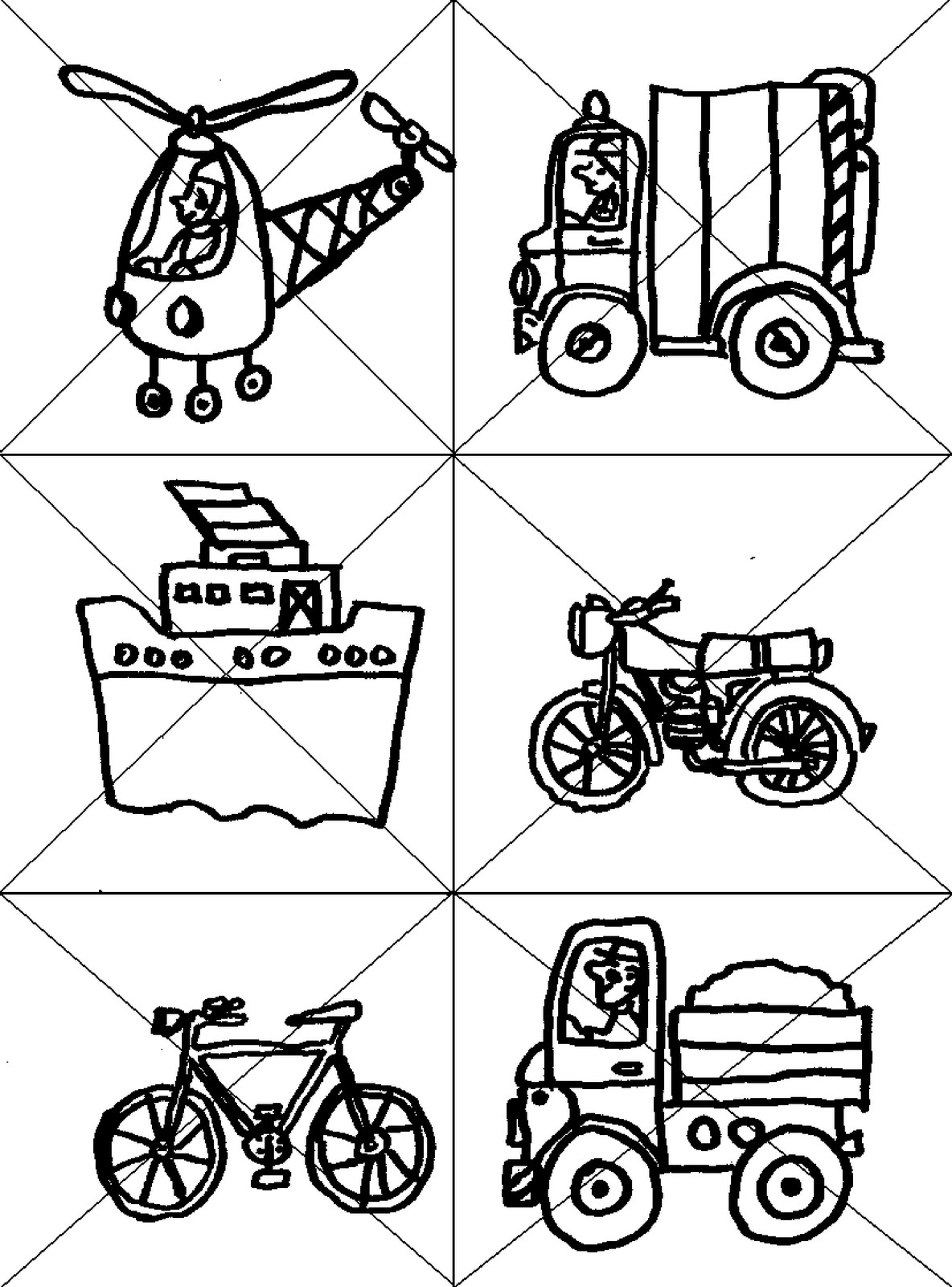 Disegni da ritagliare e ricomporre: Veicoli elicottero, bici, camion, nave